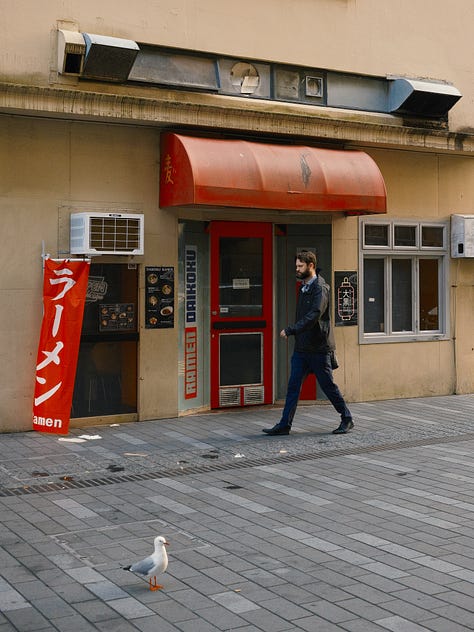 In Spring and Summer, the sun is out and that scene changes dramatically. I made a few pictures of the shop a week ago and paired it with some video footage. I’ve not spotted the elderly chef there in some time. Maybe he sold the business and gone off to enjoy life rather than the early starts of running a restaurant.