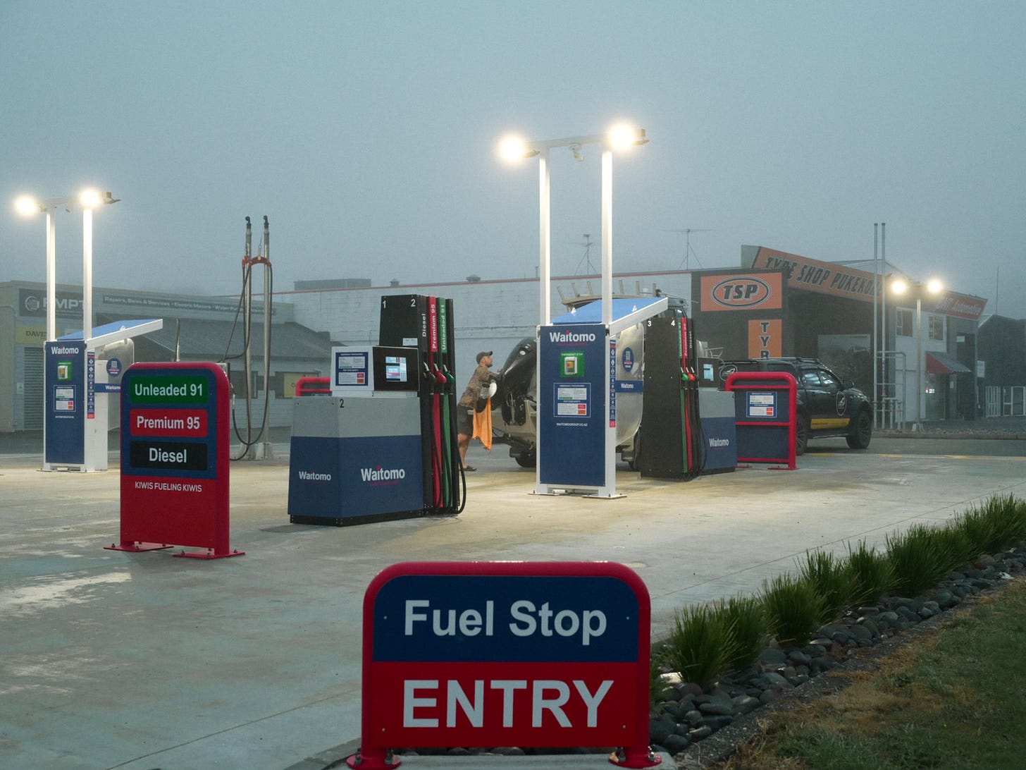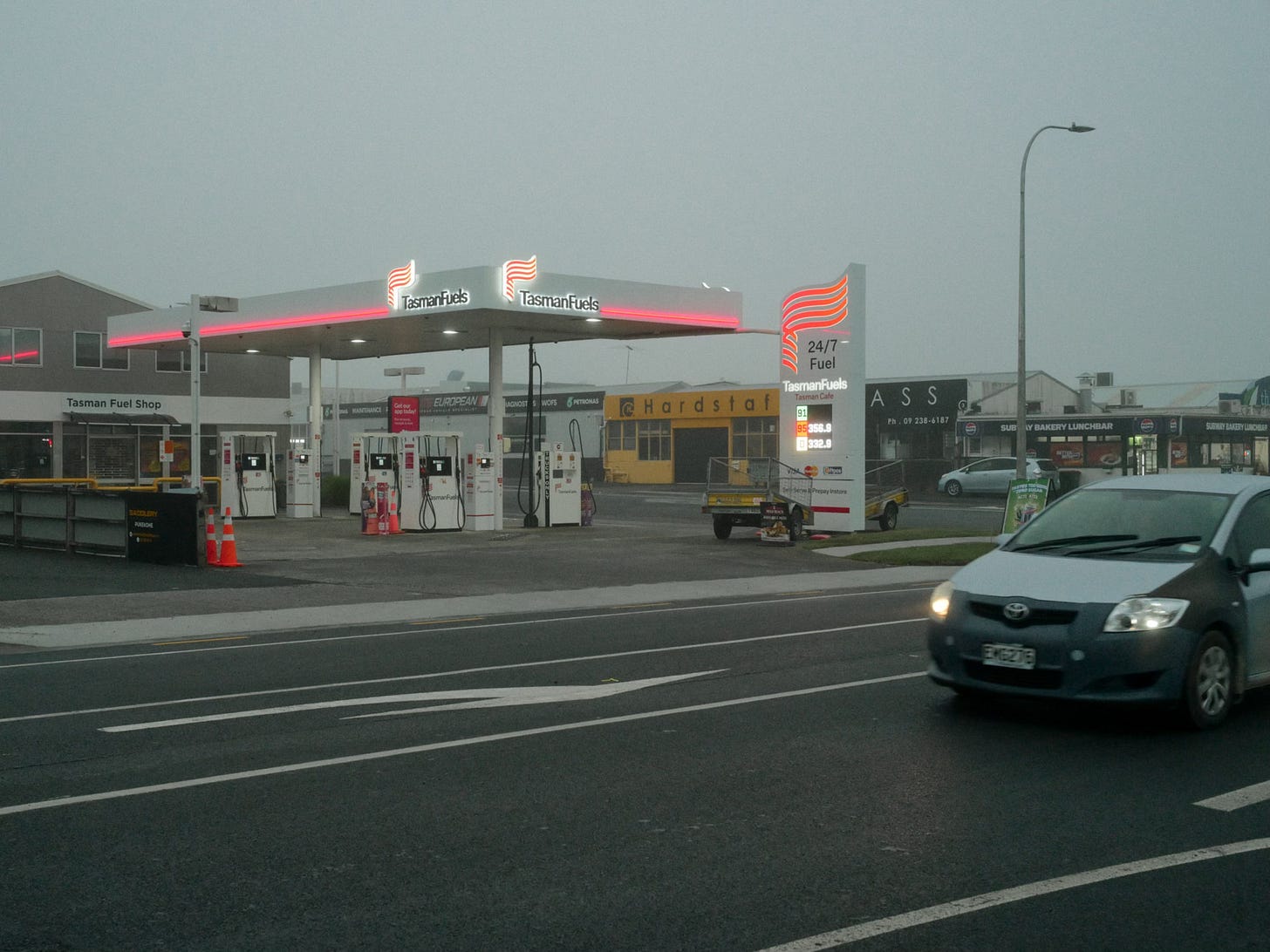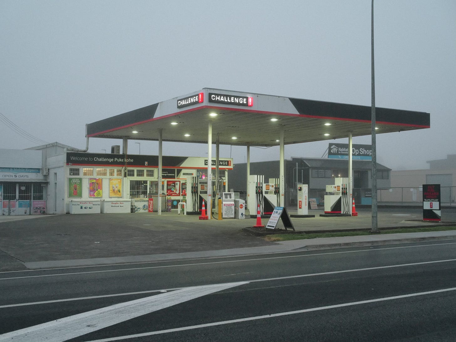 Here are some images from our walk. There are quite a few service stations on this stretch of road. Like fog, photographers are also drawn to service stations.